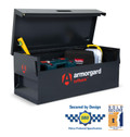 The Armorgard TB12 TuffBank truck boxes is a heavy-duty construction tool vault with a thick steel plate lid. These chests feature ultra-robust 5-lever deadlocks with anti-drill plates and anti-cut rollers in deadbolt, and come with robust Chubb style keys supplied. One of the most popular ranges of secure tool vaults, offering excellent value for money as well as having Sold Secure and Secured by Design accreditation. This design also features the unique SlamStop lid which will prevent the lid from closing unexpectedly.