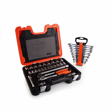 This Bahco S400 1/2in Drive 40 piece metric socket and spanner set has an extensive variety of matt chrome plated sockets, combination spanners and extension bars. They're supplied in a high quality impact and oil resistant case with spring loaded clasps for long lasting protection.