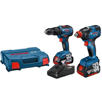 The Bosch 18V 2x4.0Ah Impact Wrench and Drill Driver Twin Pack 06019J2271 is an ideal twin kit for trade professionals as well as DIY enthusiasts. Both machines have brushless motors, the GDX200 Impact Wrench is compact with a 2in1 tool holder, perfect for keeping hands free when working. This impact wrench can be used in many applications thanks to the 1/4" internal hex and 1/2" square drive. It also has a variable speed trigger for maximum control. The GSB55 Combi Drill Driver has been designed especially for work in wood, metal and masonry. It has a robust 13mm Roehm metal chuck which has been designed to deliver the ideal power transfer for the widest range of drilling, impact drilling, and screw-driving applications. This twin kit consists of the impact wrench, a drill driver, two 4.0Ah batteries, a charger and a case.