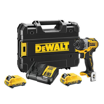 The Dewalt 12V XR Brushless Sub-Compact Screwdriver with 2 x 2Ah batteries is ideal for professional and DIY use. It has an ergonomically designed handle and is lightweight which provides the user with optimum comfort and control. Fitted with a brushless motor to offer a better runtime, improved torque and a longer life. The size of this unit is key as its compact length allows access to tight spaces which can help tremendously in the workplace it also has a Drop and Load Bit holder so it can be used one handed and the Bright LED ring assists visibility in lower lighting. To prevent running out of charge during a job this tool has a state of charge indicator, included with 2 x 2Ah batteries so you have plenty of life to get the job done.
