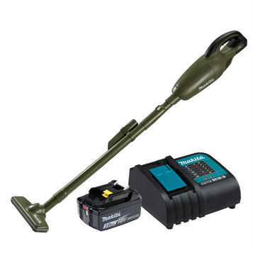 Trigger switch with lock on: This cordless vac by Makita has a new switch design that includes a trigger switch with a sliding lock on function for longer, continuous use with reduced fatigue