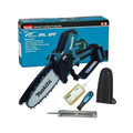 The Makita DUC150 is a cordless, brushless pruning saw that's straightforward to use, lightweight, and compact, making it perfect for easily pruning trees in gardens or orchards. It features a new, easy tool-less chain change and tensioning, automatic chain oiling, a lock-off lever that can be reached from both sides, a rear hand guard, an adjustable guard, and uses an 80TXL saw chain.