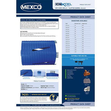 Our Mexco 162mm diamond core drills have been manufactured to a high standard to withstand the huge stresses involved when core drilling into general masonry building materials. Diamond core drill bits offer excellent drilling speeds and lifetime when used with most core drill machines due to their high diamond concentration, high quality barrels, back ends and 10mm segment height.