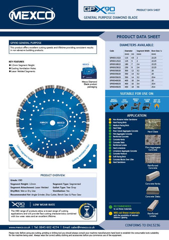 The GPX - General Purpose diamond blade provides the user with excellent cutting characteristics in the majority of non-abrasive construction products used in the UK.