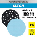 Trend AB/150/M7/P - 150mm 80G/120G/180G Pro Mesh Sanding Discs with Pad Saver, 7 Pack